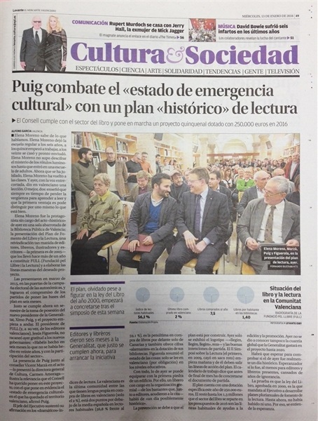 per a aprendre a llegir i escriure. Un acte de coratge que va obrir-li tot un món de possibilitats, de coneixements, d'autonomia.... tanta que ahir, entre un President de Generalitat, un Conseller, una Directora General i molts més alts càrrecs polítics ella fou la protagonista. Elena va llegir un text propi on, amb la veu entretallada pels nervis, va contar la seua història per a emoció dels presents i per a explicar la importància de saber llegir i escriure però de la importància en majúscules, eixa que, de vegades, per comú, no valorem. Ara, el nou govern valencià aposta per este Pla de Foment del Llibre i a Picanya persones com Elena podran disfrutar-lo perquè un dia van creuar les portes de l'Escola d'Adults.