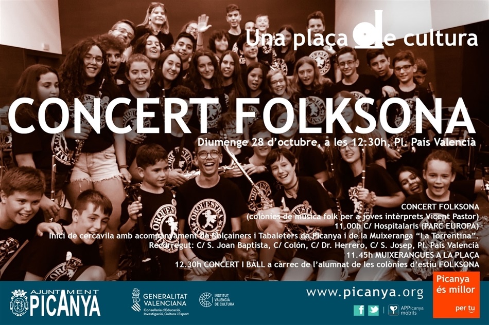 Este diumenge 28 d'octubre i dins la programació "Una plaça de cultura", la Plaça del País Valencià serà l'escenari de l'actuació de l'orquestra "Folksona".