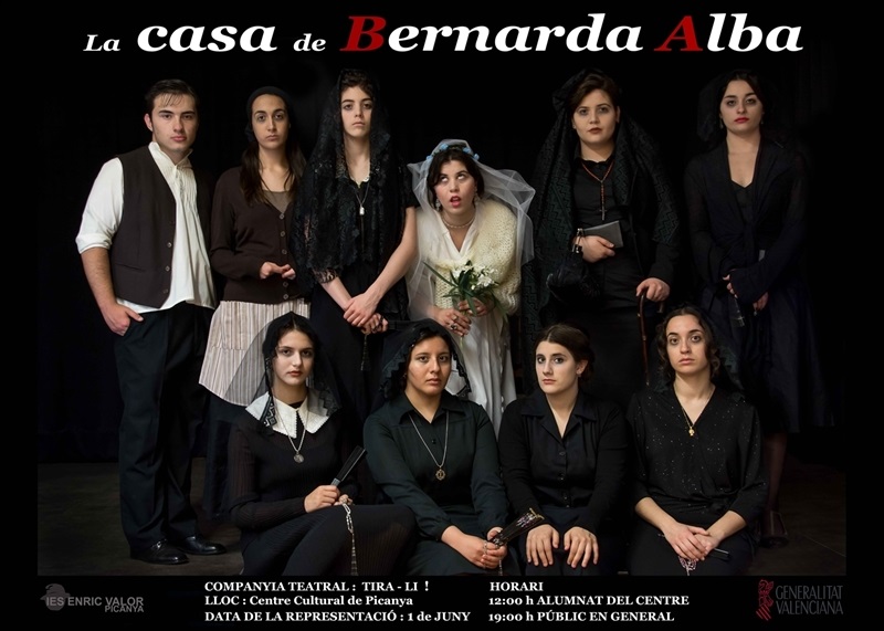 Este dimecres 1 de juny el Centre Cultural acull una representació teatral ben especial. El grup de teatre Tira-li dirigit per Isabel Pedrós i integrat per l'alumnat de l'IES Enric Valor representa el clàssic de Federico García Lorca "La casa de Bernarda Alba".