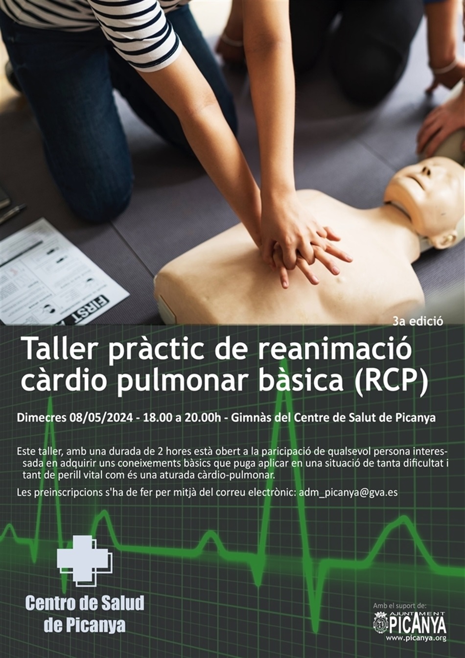 Des del Centre de Salut de Picanya s'ha organitzat, per al proper dimecres 8 de maig, un taller pràctic sobre reanimació càrdio-pulmonar bàsica.