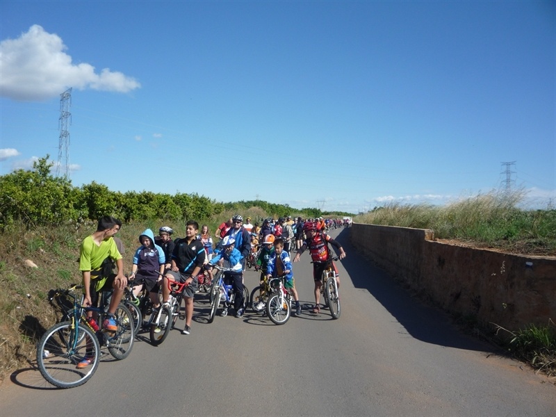 Amb un oratge, esta vegada sí, ben assolellat, més de 150 picanyers i picanyeres s'animaren a traure les seues bicis i recòrrer els 8 kilòmetres (8 d'anada i 8 de tornada) que ens separen del Poliesportiu de Sant Ramon a Picassent, on es van reunir amb els participants d'Alcàsser i Torrent per a compartir esmorzar i xerrada.