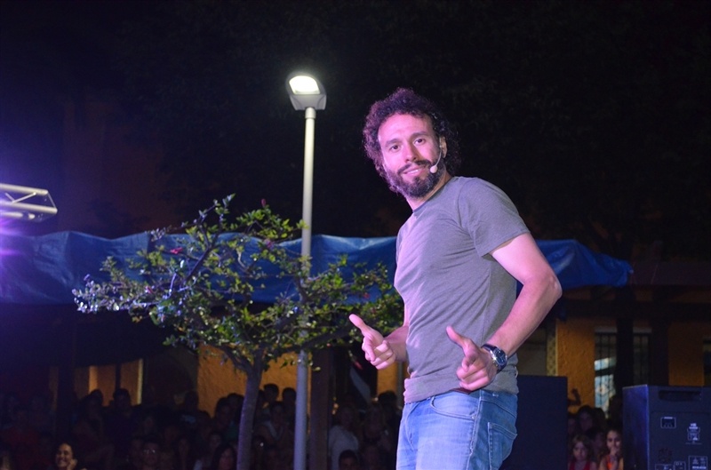 Imatges de l'actuació del monolguista Manu Badenes a la 1a Nit de Monòlegs amb la col·laboració d'Interpenyes Picanya. Festes Majors 2014