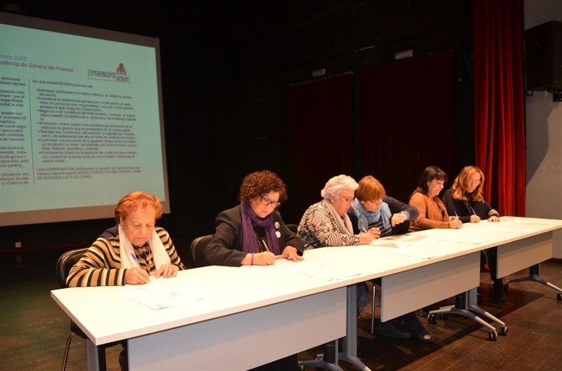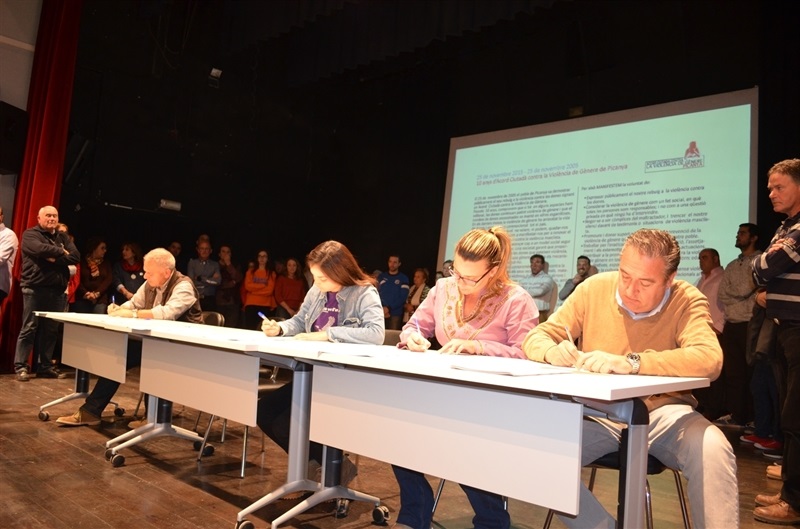 Imatges de l'acte de signatura de la renovació de l'Acord contra la violència de gènere al Centre Cultural de Picanya el dimarts 24 de novembre de 2015