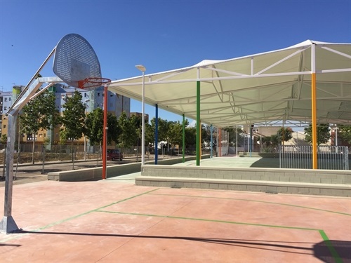 L’element més singular d’esta nova instal·lació serà el sostre tèxtil sobre la pista central. El seu objectiu és tant permetre la pràctica esportiva o l’encontre en condicions meteorològiques adverses (pluja, massa sol...) com esdevindre un espai on desenvolupar activitats culturals com ara teatre de carrer, cinema a la fresca, sopars populars, concerts... L’espai estarà dotat amb connexions que permetran, amb una mínima intervenció l’adequació de la instal·lació el desenvolupament de tot tipus d’esdeveniments. Amb l’elecció d’este tipus de coberta també s’ha buscat la instal·lació lleugera i moderna tant des del punt de vista estètic com en quant a manteniment i inversió necessària.